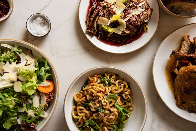 For Birch, we glaze the interior and exterior of each piece in white, then wipe the rim to reveal a hint of the clay beneath.