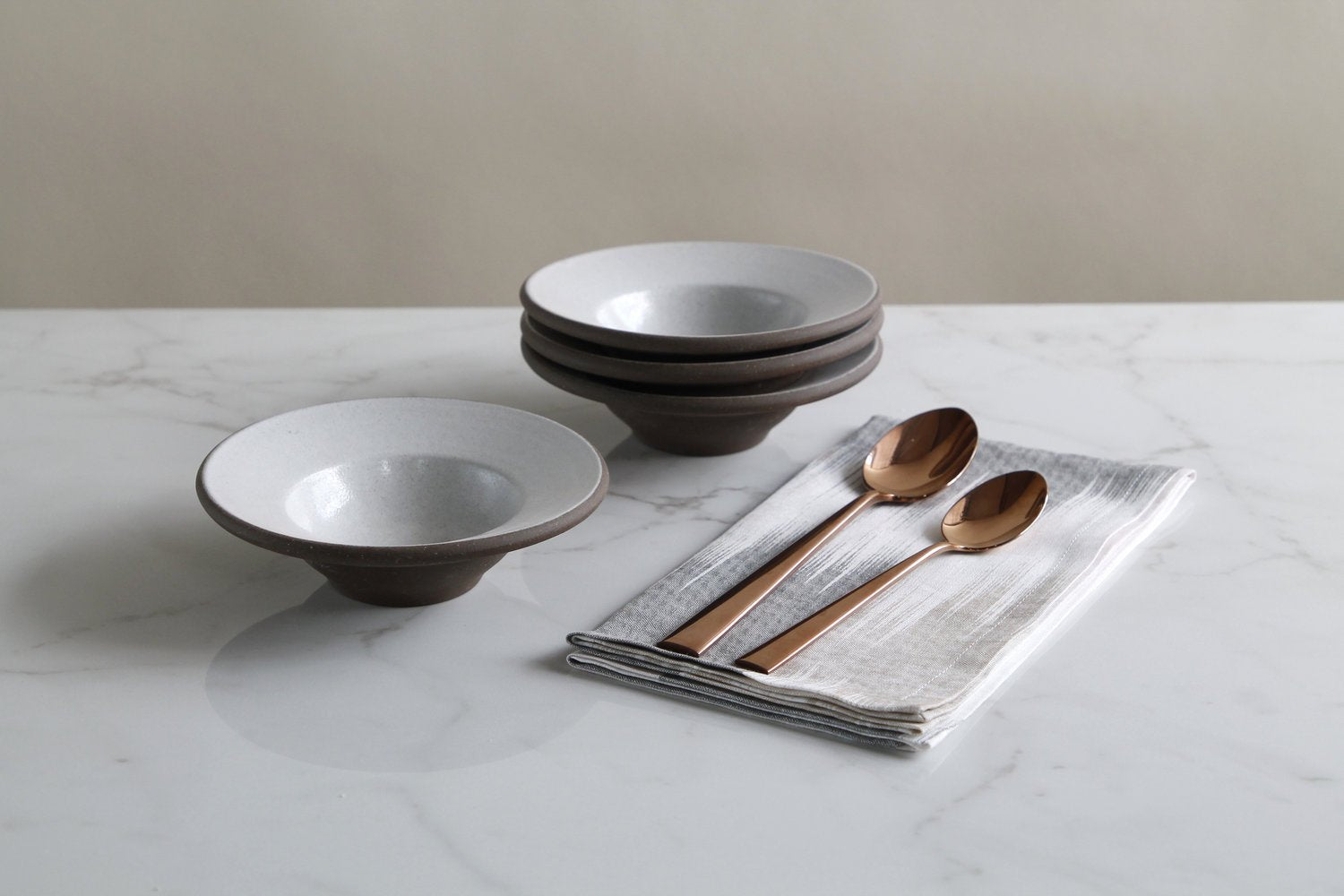 When Jono started the company in 2004, he had a simple mission: to design unique dinnerware options for the hospitality industry. He started small, with one wheel and one kiln, and collaborated with chefs, taking risks and learning from his mistakes. Then and now, his priority is to work directly with our clients, responding quickly and thoughtfully to their needs in ways that larger manufacturers can’t, resulting in dinnerware with a personal feel that sets our clients’ restaurants and dining rooms apart.