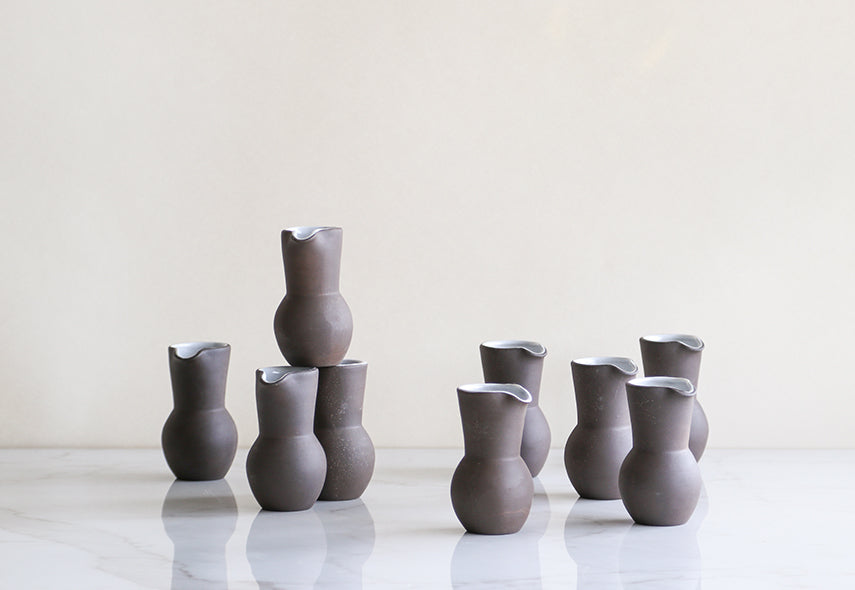 Each piece that Jono has designed has its own unique production process, which can entail as many as 15 individual steps, and use methods such as slip casting, jiggering, and good old-fashioned wheel throwing. Our studio is equipped with 10 kilns and 6 wheels and we begin each day with the thrill of opening our Blaauw kiln to discover the finished pieces we loaded in the night before.