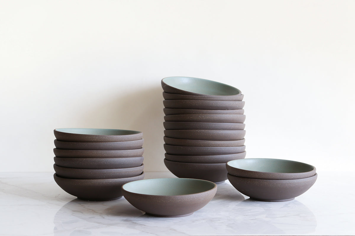 Each piece we make has its own unique production process designed by Jono, which can entail as many as 15 individual steps, and use methods such as slip casting, jiggering, and good old-fashioned wheel throwing.