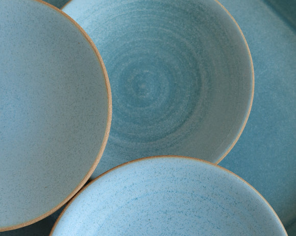 Similar to our Moss glaze, Turquoise comes in a range of hues — some pieces are a matte, robin egg shade and sometimes you’ll even see swirls of a darker, shiny blue. This glaze is especially photogenic, framing food colorfully on the plate. (That said, it still has a neutral quality that allows it to pair nicely with any other glaze in our collection.)