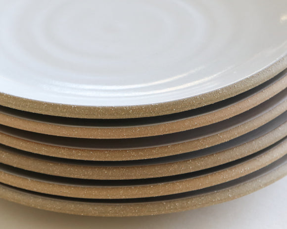 Our Birch dinnerware uses the Toasted clay and white glazes described above, but this style is differentiated in the way the glaze is applied. On Birch, the glaze covers both the interior and exterior of each piece, and the only exposed raw clay is found along the rim, which is achieved by an artisan in our studio wiping the rim by hand.