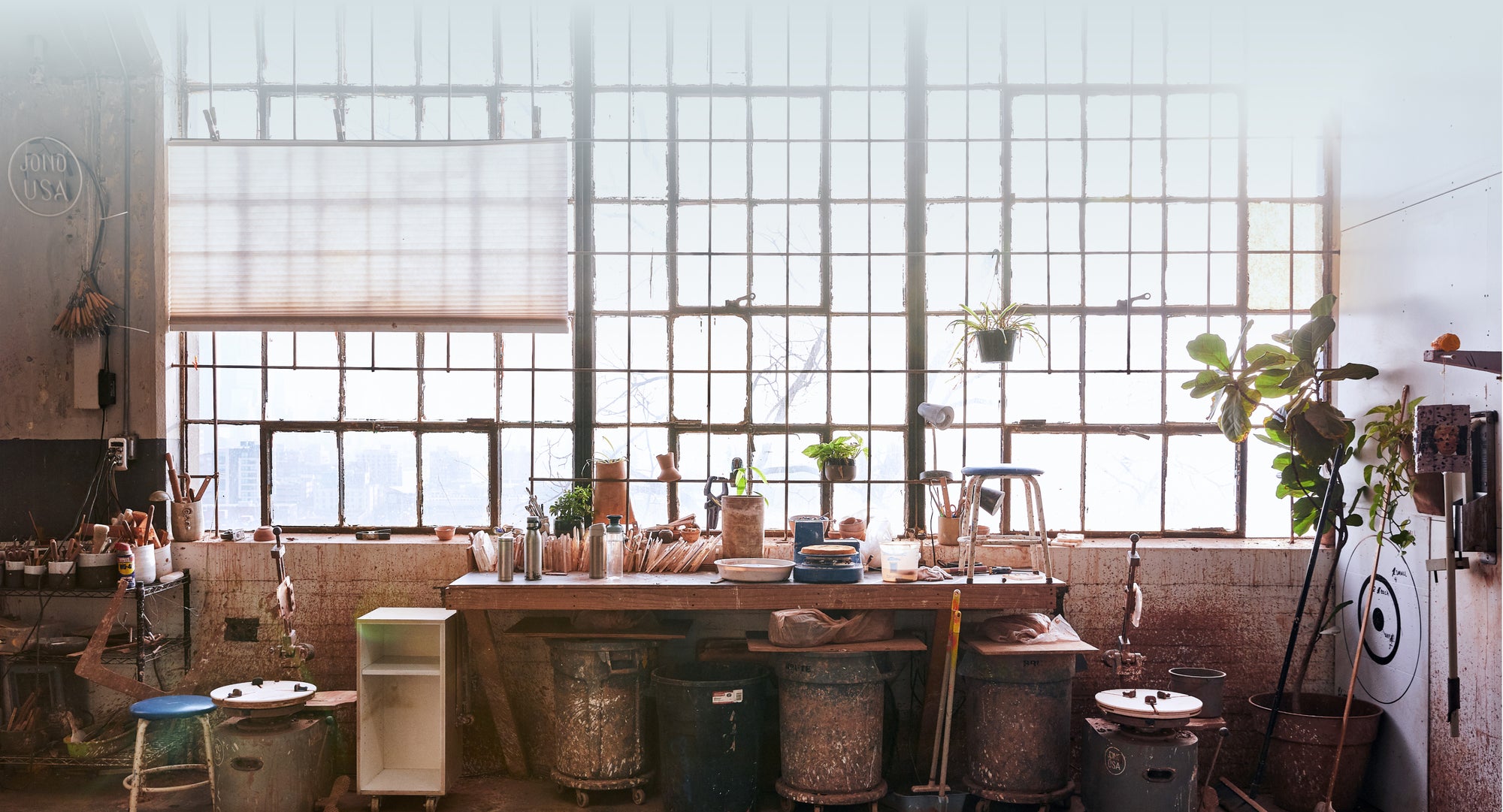 Our dinnerware is hand-made at a light-filled studio in Union City, New Jersey, by a team of artisans. The studio is also where we quality check and pack up dozens of orders per day, which are then sent out to restaurants like Lilia, Jean-Georges, and Felix Trattoria and to serious home cooks all over the country.