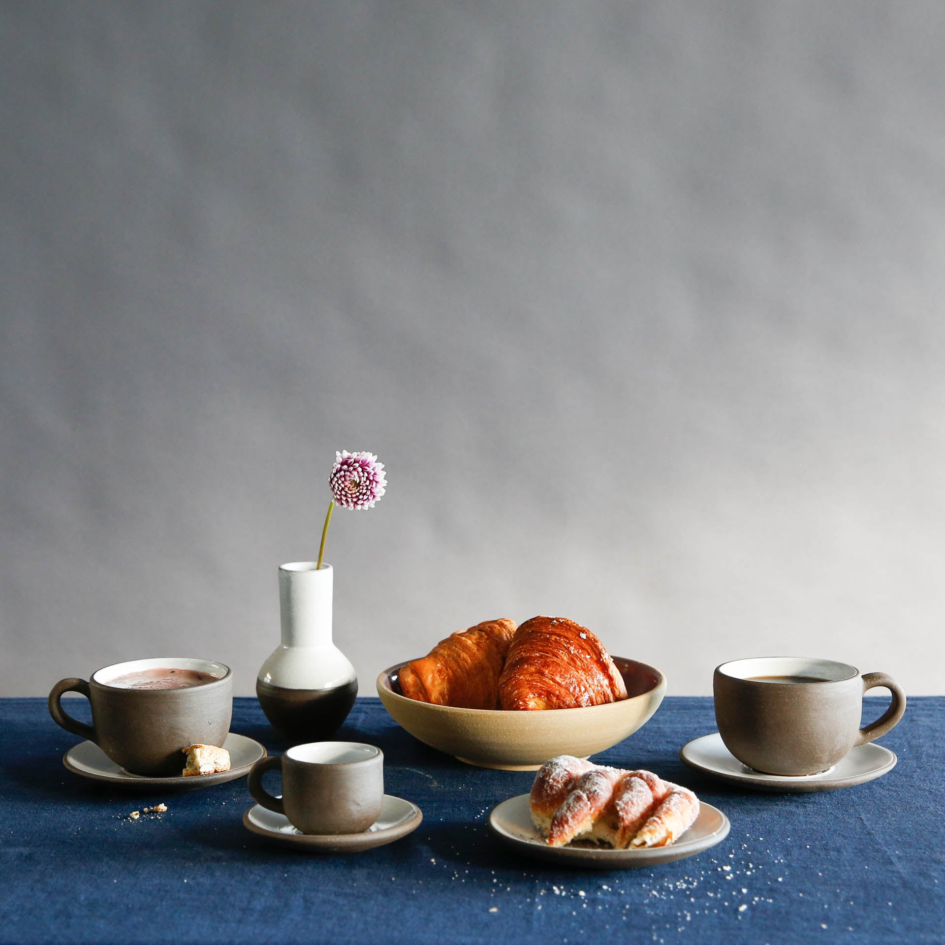 Maybe you’ve got a state-of-the-art La Marzocco, or maybe you make stovetop espresso with your grandmother’s hand-me-down Bialetti. Either way, our stoneware espresso cups make drinking it feel sophisticated—plus, thick walls help retain the liquid’s heat and espresso’s golden crema looks great in the white glaze and dark brown stoneware.