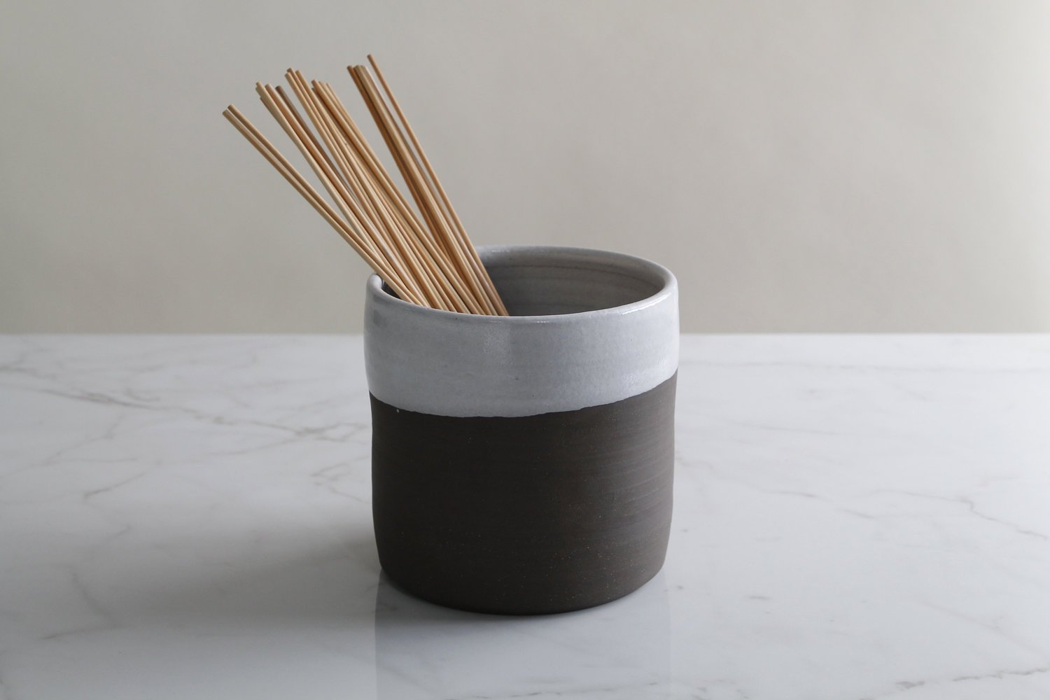 Our Utensil Crocks come in three sizes (small, medium, and large) and two clay bodies (Dark Brown and Toasted). Each Crock is hand-thrown and dipped in glaze.